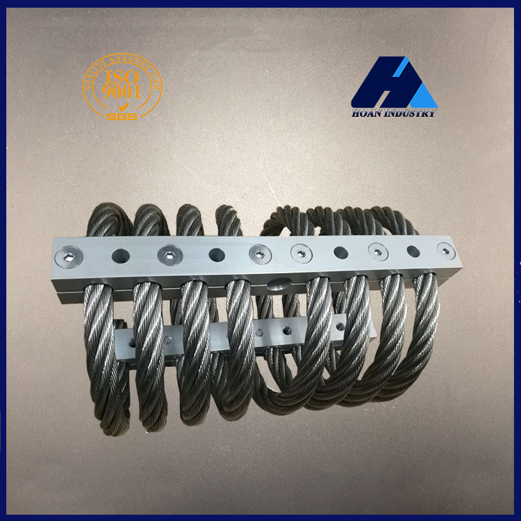 當激振與沖擊幅度足夠大時 ,隔振器鋼絲繩各股之間發生內磨擦 ,并且與鋼絲繩運動方向相反 ,從而消耗大量的能量,衰減振動與沖擊強度;當振動的幅度較小時,鋼絲繩各股由于磨擦而擰在一起,不產生相對滑移,從而表現出良好的線彈性,保持系統的穩定,所以,鋼絲繩隔振器適應于振動與沖擊情況復雜多變的工況 ,其自適應能力特別強 ,能有效地避開強烈共振與沖擊,從而起到緩沖隔振的作用。