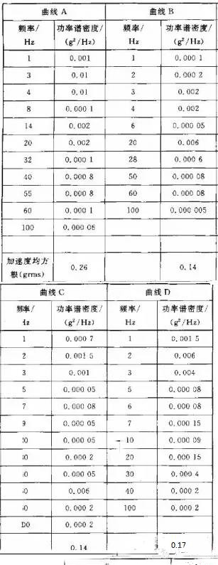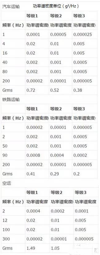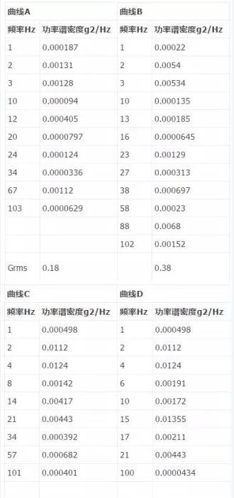 附表A--常見不同運輸方式隨機振動PSD曲線