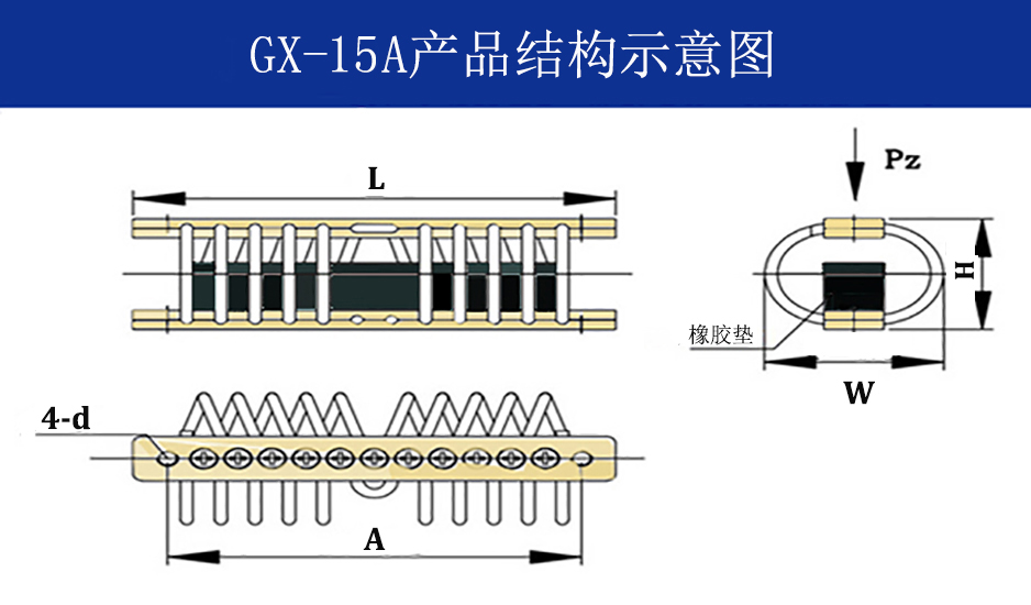 GX-15A型鋼絲繩隔振器Pz向公稱載荷為15N(1.53kg),是在GJB-150推出后,為防止鋼絲繩在強沖擊下屈服失效,在GH型鋼絲繩隔振器基礎上的改進型隔振器,除了可滿足GH型鋼絲繩隔振器的性能之外,其抗沖擊能力也有了大幅度的提高,可滿足高達 100G以上的抗沖擊要求,適用于裝甲車輛、自行火炮、機載、車載、艦載等電子、機械設備、計算機與儀器儀表在高低溫、化學污染等惡劣環(huán)境下的隔振緩沖,導彈衛(wèi)星的運載、導航與發(fā)射系統(tǒng)的安全防護以及各類工業(yè)動力機械的工業(yè)降噪隔振等方面。