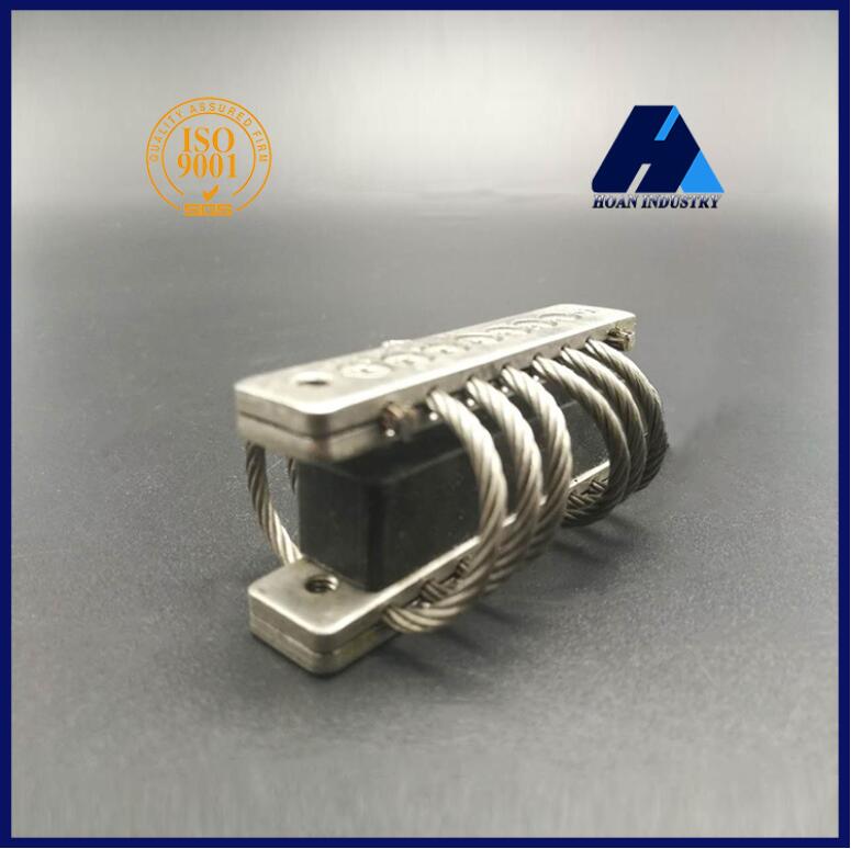 鋼絲繩隔振器是由鋼絲繩繞成螺旋狀并固定在沿螺母布置的兩塊金屬板之間制作而成的,它是一種具有非線性特性和干摩擦阻尼的新型隔振器,采用多股鋼絲按一定方向纏繞而成的鋼絲繩作為彈性元件。