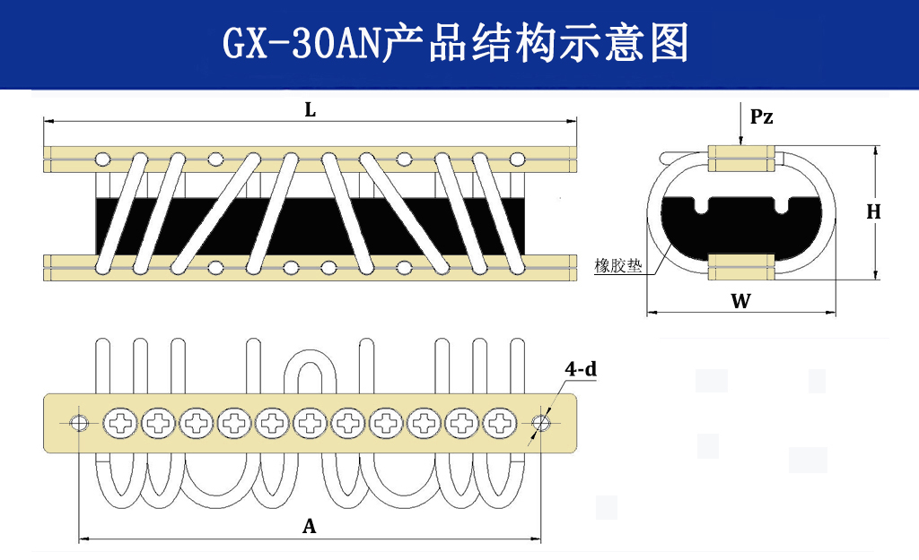 GX-30AN型鋼絲繩隔振器Pz向公稱載荷為30N(3.06kg),是對GX型鋼絲繩隔振器的進(jìn)一步改進(jìn),將長方體的橡膠墊改為與鋼絲繩緊密相貼的拱形橡膠墊,不僅對Pz方向進(jìn)行隔振緩沖,而且也保證了其它方向的隔振緩沖效果,可滿足高達(dá)100G以上的抗沖擊要求,適用于裝甲車輛、自行火炮、機(jī)載、車載、艦載等電子、機(jī)械設(shè)備、計(jì)算機(jī)與儀器儀表在高低溫、化學(xué)污染等惡劣環(huán)境下的隔振緩沖,導(dǎo)彈衛(wèi)星的運(yùn)載、導(dǎo)航與發(fā)射系統(tǒng)的安全防護(hù)以及各類工業(yè)動力機(jī)械的工業(yè)降噪隔振等方面。