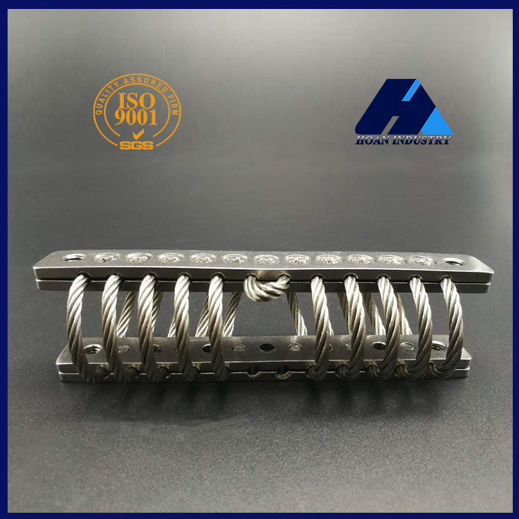 鋼絲繩隔振器是由鋼絲繩繞成螺旋狀并固定在沿螺母布置的兩塊金屬板之間制作而成的,它是一種具有非線性特性和干摩擦阻尼的新型隔振器,采用多股鋼絲按一定方向纏繞而成的鋼絲繩作為彈性元件。