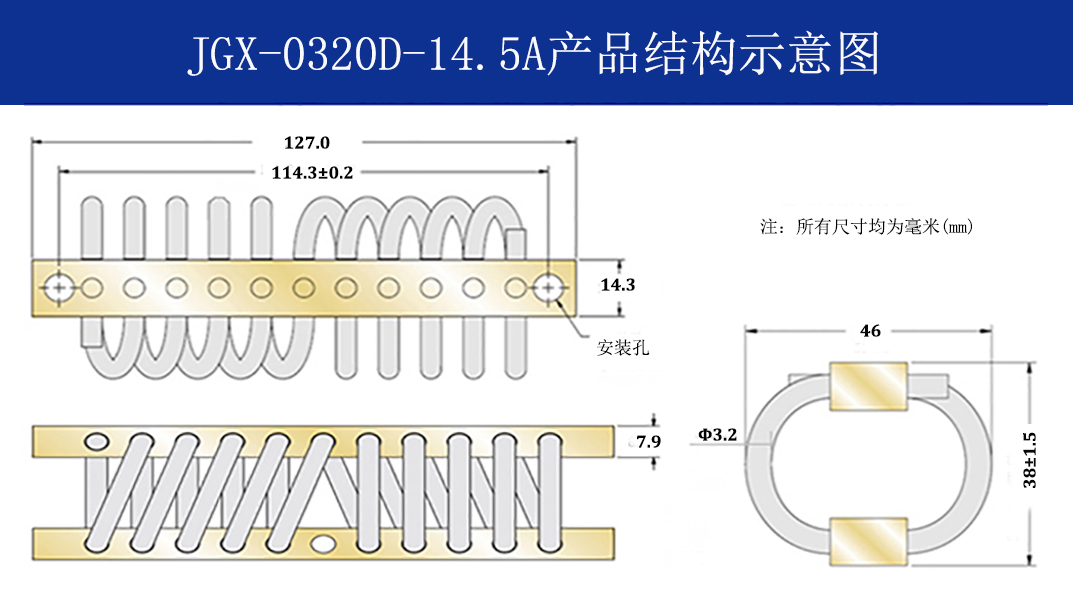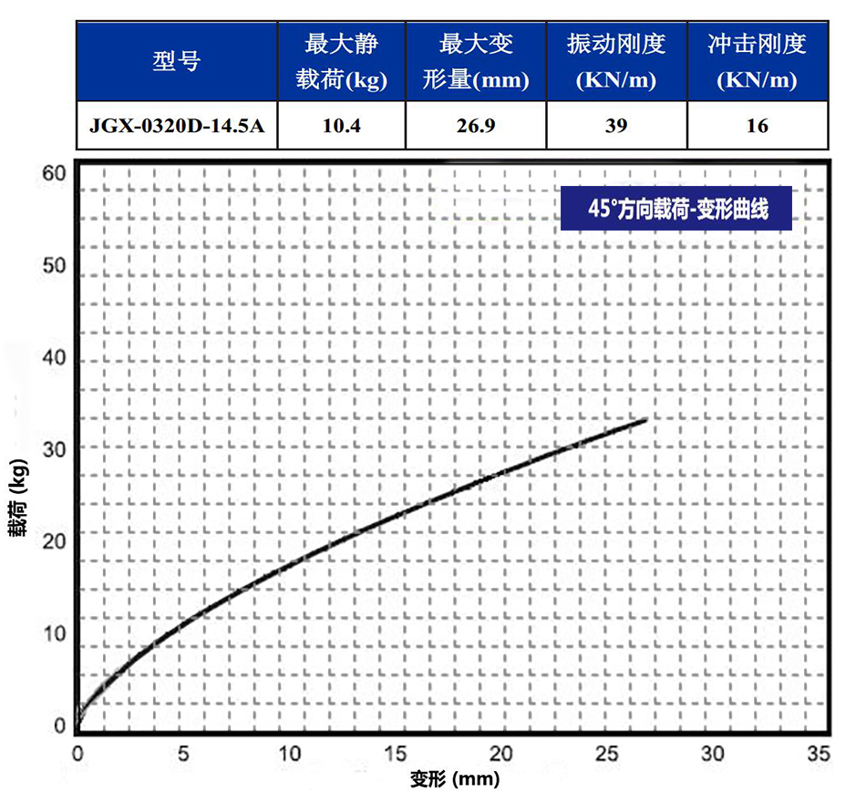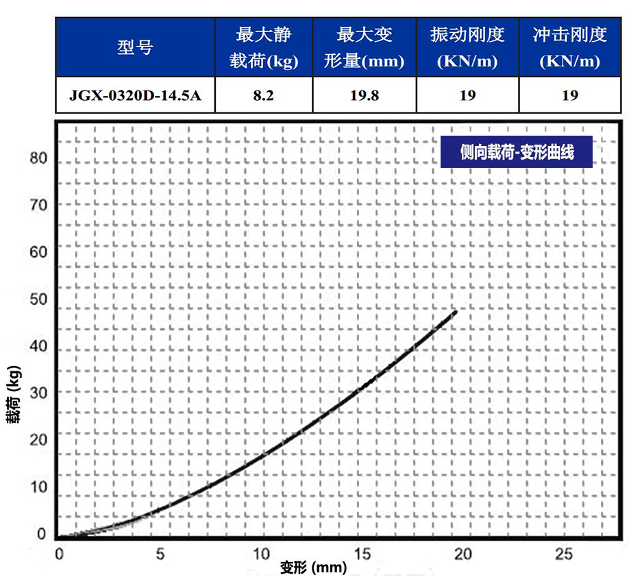 JGX-0320D-14.5A鋼絲繩隔振器是JGX-0320系列鋼絲繩隔振器中的一種,該型號由直徑3.2mm的鋼絲繩沿著上下兩個夾板繞制10圈而成,能夠承受的最大靜載荷為14.5kg,具有耐腐蝕、耐沖擊、耐高低溫等性能,適用于機載、車載、艦載等電子、機械設備、計算機與儀器儀表的隔振緩沖,導彈衛星的運載、導航與發射系統的安全防護以及高低溫、化學污染等惡劣環境下機械、電子設備與設施的隔振緩沖等方面。