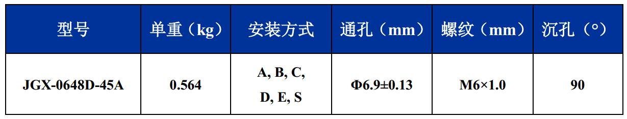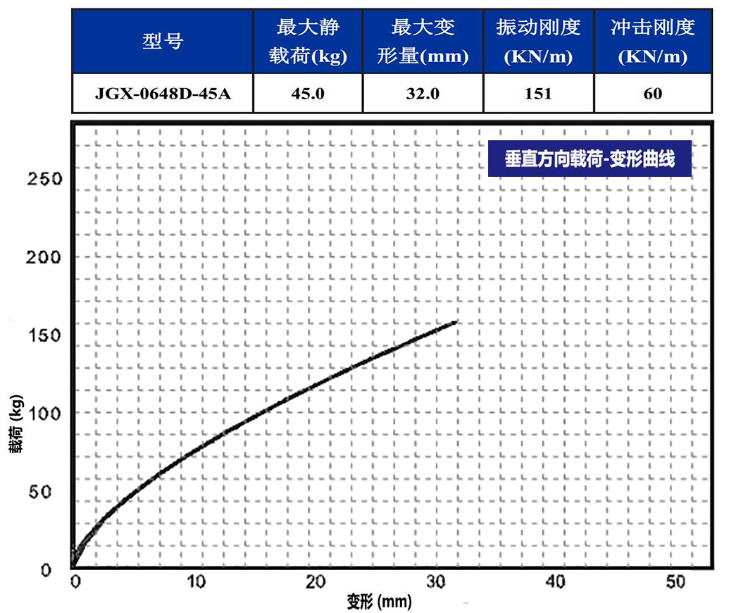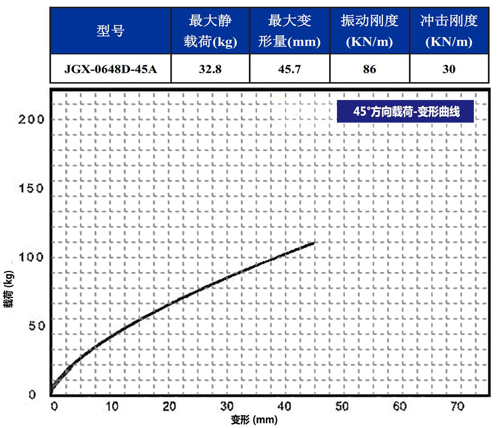 JGX-0648D-45A鋼絲繩隔振器是JGX-0648系列鋼絲繩隔振器中的一種,該型號由直徑6.4mm的不銹鋼鋼絲繩沿著上下兩個夾板繞制8圈而成,能夠承受的最大靜載荷為45kg,具有耐腐蝕、耐沖擊、耐高低溫等性能,適用于機載、車載、艦載等電子、機械設備、計算機與儀器儀表的隔振緩沖,導彈衛星的運載、導航與發射系統的安全防護以及高低溫、化學污染等惡劣環境下機械、電子設備與設施的隔振緩沖等方面。